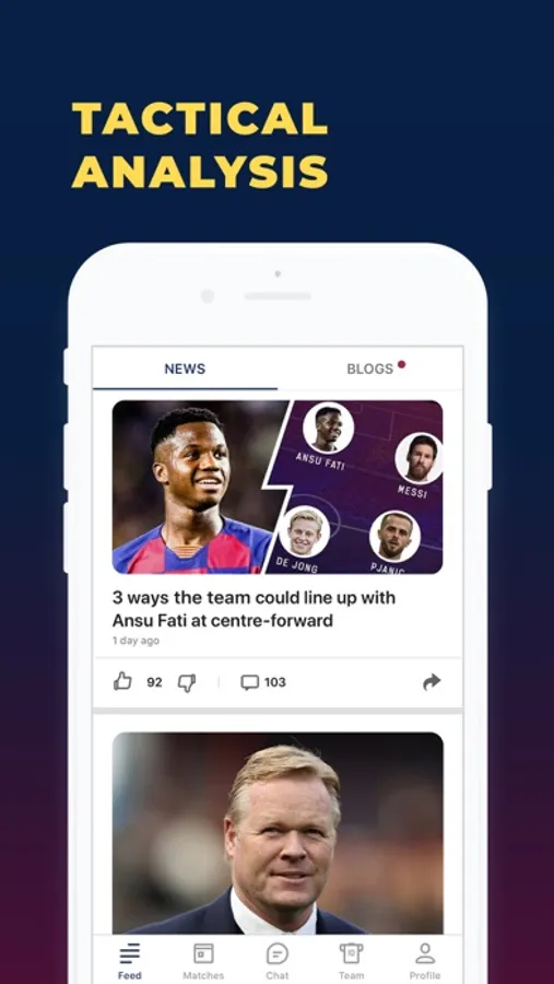 You will get every piece of information in an instant! From the latest news, LIVE scores and match analysis to game schedule, results and goal notifications – all the important info for a true Blaugrana fan.