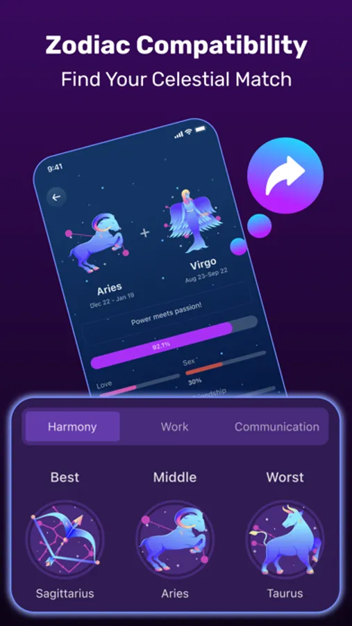 • This astrology app is the best for you if you're interested in love horoscope, galaxy tarot, co star and zodiac compatibility.