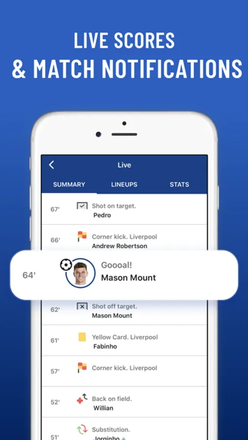 Get everything about the club in an instant! From the latest news to the best editorial articles, LIVE match commentary, game schedule, results and goal notifications - all the information for a true Chelsea fan!