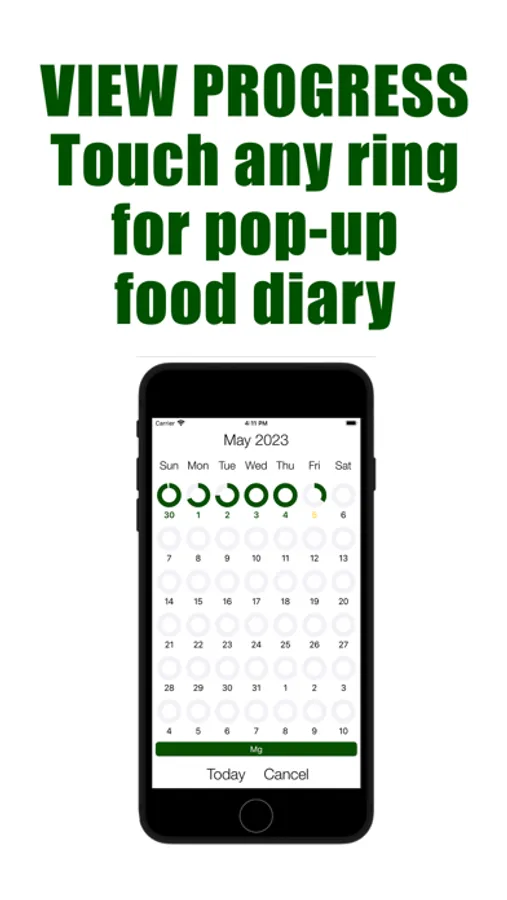 You can also view your progress over time on the Month view dashboard, and export food diaries and magnesium intake into a spreadsheet for your own information or to share with healthcare providers.