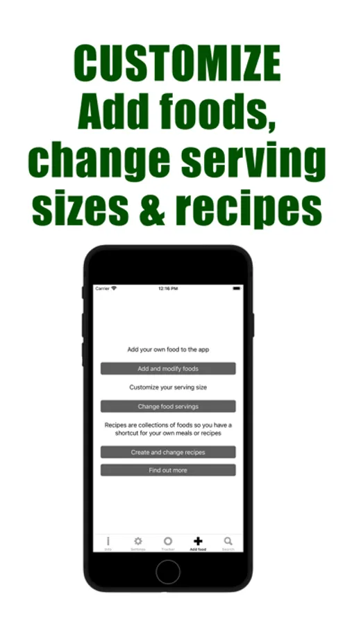 The app is curated and contains 325+ common (mainly healthy) foods and drinks and you can add your own branded and other foods and recipes at any time using voice recognition or the keyboard.