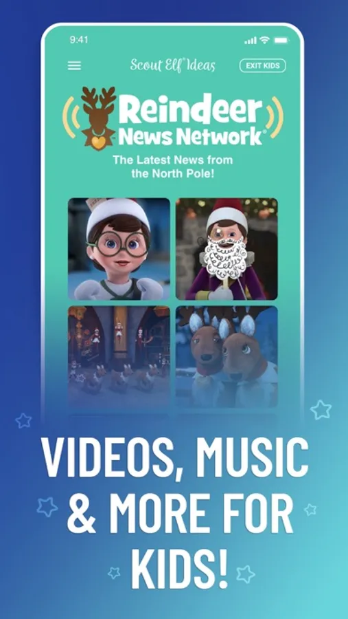 —Toggle over to the Kids experience! Your little one can look at all the silly Elf ideas with their own Kids Idea Spinner, watch a great library of North Pole toons, catch up on the latest with Reindeer News Network, or listen to all the great music hits in the North Pole Jukebox.
