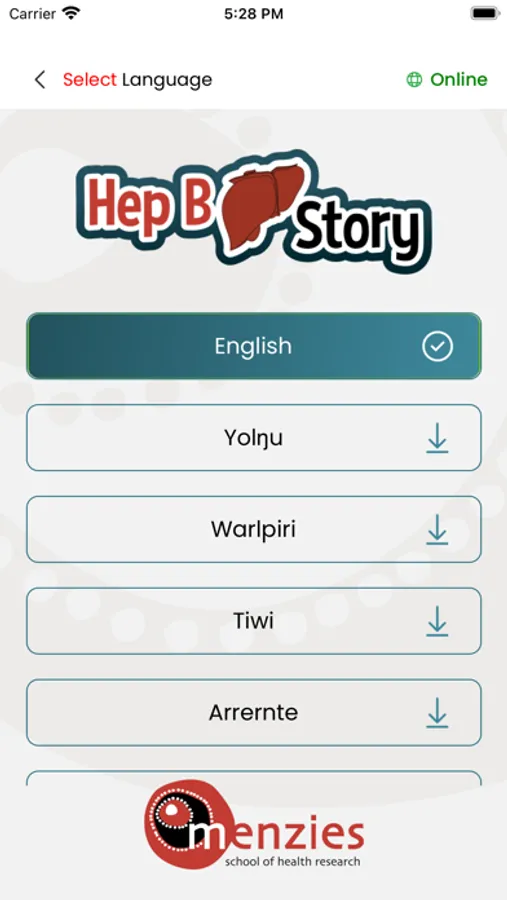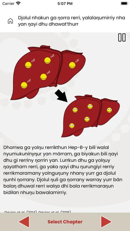 The Hep B story is a visual, interactive app in both English and 6 Aboriginal languages designed for patients living with chronic hepatitis B and their families. It tells the story of the Hep B virus, how you get it, what happens over time, how you know you have it, as well as details about immunisation and treatment (including game). There is also a separate women’s section dealing with mother to child transmission and ways to prevent it. It was produced in conjunction with Aboriginal people who are Indigenous Australians living in northern Australia and is grounded in their culture, worldview and language.