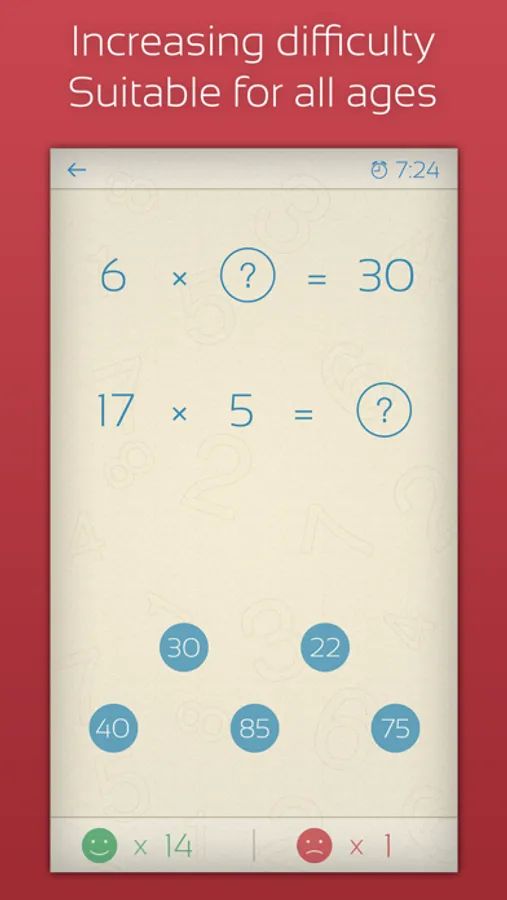 Master addition, subtraction, multiplication, and division in no time. Track your progress and statistics and find your strengths and weaknesses. Then practice more and improve your math skills.