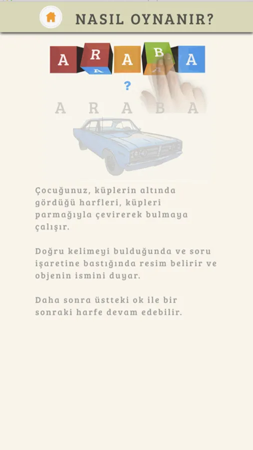 Çocuğunuz, bu programı kullanarak alfabeyi ve sevdiği objelerin yazılışlarını eğlenerek öğrenecektir.