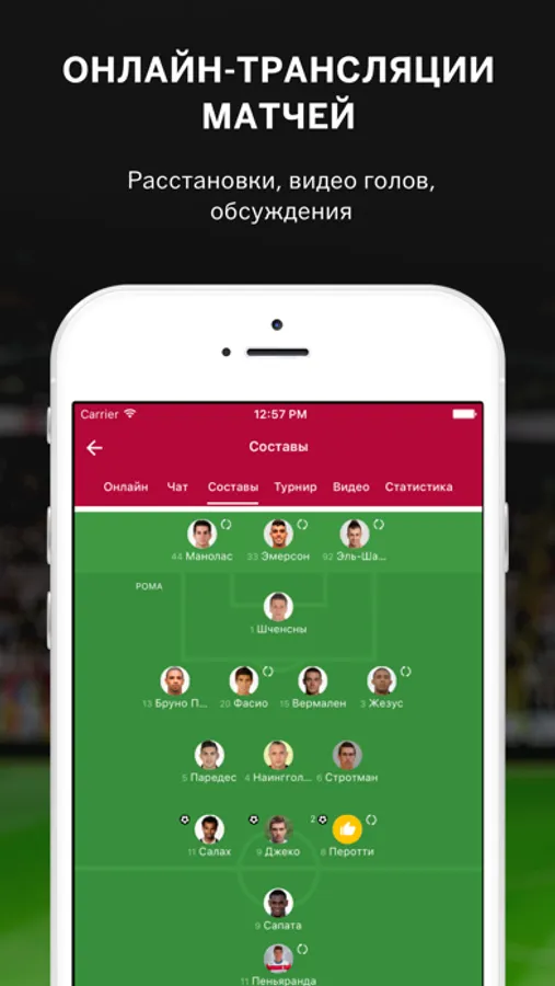 • Онлайн трансляции матчей и состав команды;