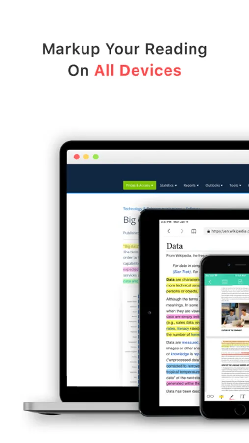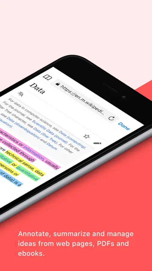 • Highlight text and excerpts on web pages through built-in or Safari browser.