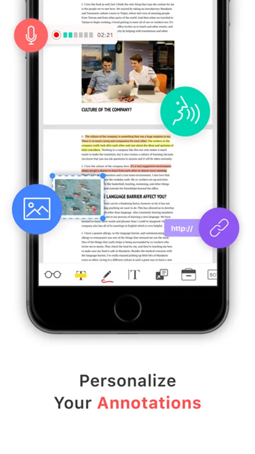 • Add highlights, freehand writings, sticky notes, text boxes, arrows, shapes, etc.