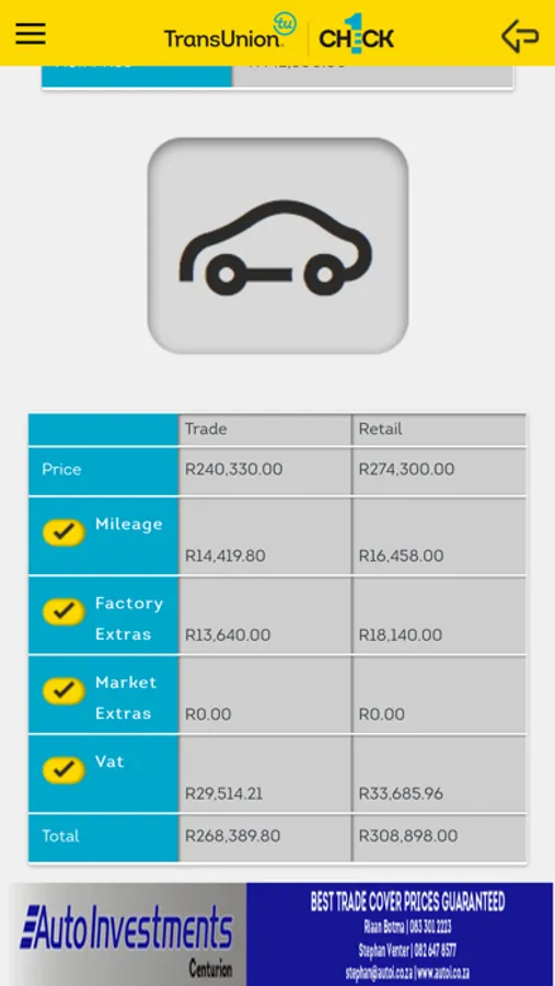 The 1Check Application provides all the information needed by the dealership, making transactions smooth and hassle free, the 1Check App is the dealerships data base in their pocket.