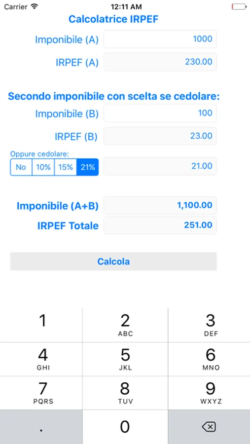 Versione 2.0: ora è possibile confrontare la tassazione IRPEF su un reddito aggiuntivo, determinando la differenza sia come IRPEF che come cedolare secca.