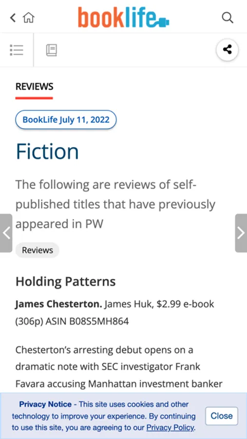 Every month, Publishers Weekly publishes BookLife, a supplement dedicated to covering the self-publishing industry that features interviews with authors, book announcements and listings, news, features, analysis, book reviews, and more.