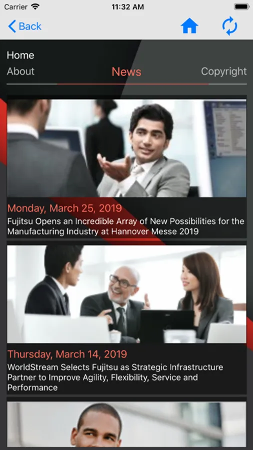 Corporate Company App for different use cases dependent on the users authority. We offer company internal information and news and provide secured real time information for sales, service and production community.