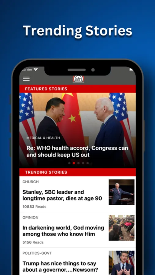 AFN.net is the news website of the American Family News Network and the American Family Association. It exists to present the day’s stories from a biblical perspective on such topics as politics, education, culture, national security, pro-life, media, and more. AFN features the latest breaking stories from across the U.S. and around the world, as well as news of the challenges facing Christians in today’s society.