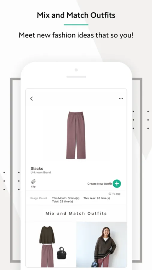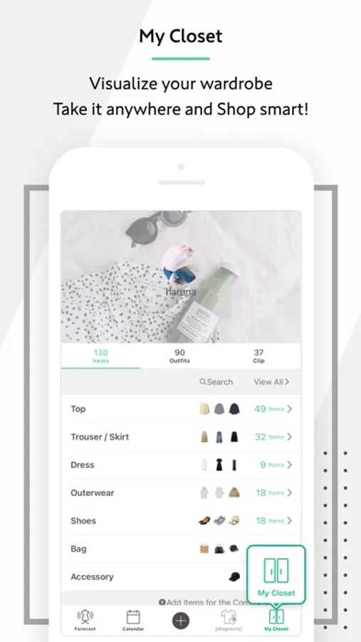As soon as adding your favorite clothing items, fashion goods, never worn clothes, and clothes you always wear in the same way, mix-and-match outfit ideas will be automatically created and delivered in just 3 seconds! If you add clothing items you want to buy, you can even simulate how to wear them with items you already own.
