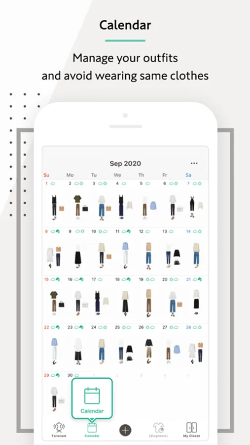 “What did I wear when I met her/him?” “I’m worried if she/he would think I always wear the same clothes.” In those cases, the calendar in the app enables you to record your outfit and helps you check what you wore. Since you can even add outfit ideas for future, you don’t need to be upset on the clothing any more!