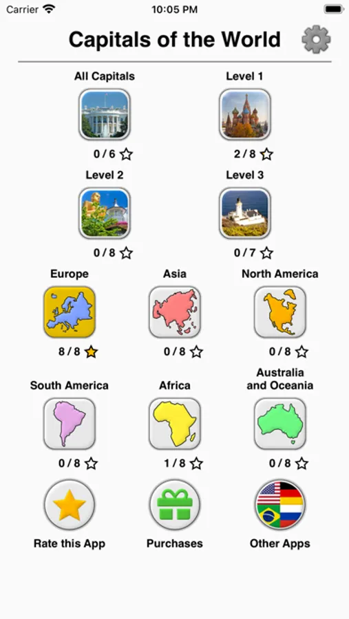 The app is translated into 30 languages (including English, Spanish, German, etc.), so you can learn the names of the countries and capitals in any of them.