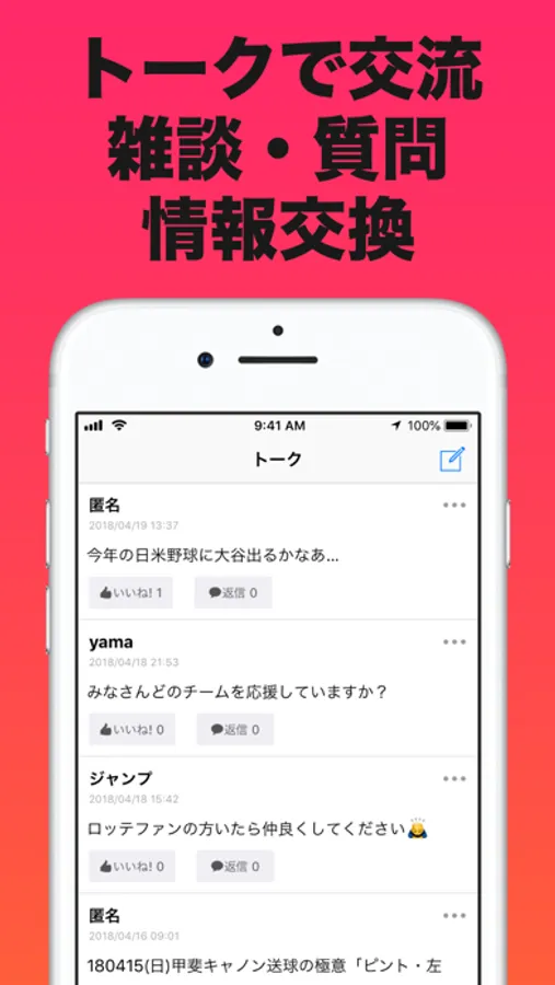 ・野球ファン同士で雑談をしたり質問したりするなどの交流ができます。
