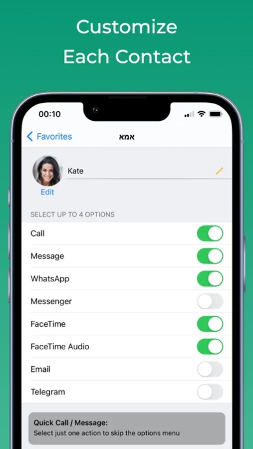 Support calling, message, WhatsApp, Slack, Telegram, Facebook Messenger, email, and FaceTime.