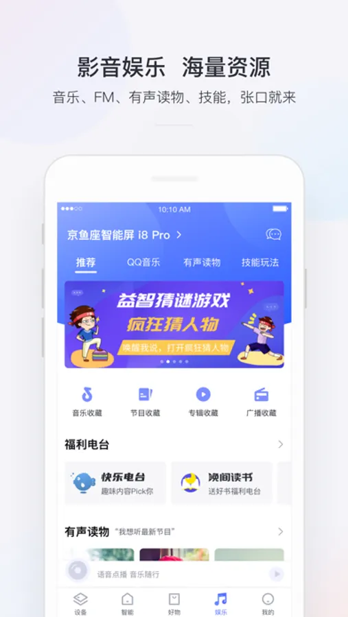 “小京鱼”是一款强大的智能助手,为您提供语音设备添加、语音技能介绍、音频内容展示、对话记录等服务,是您开启语音智能生活的实用小助手。