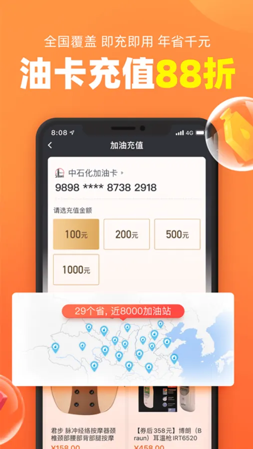 【优惠加油】加油卡充值,低至88折,覆盖全国8000多家加油站,即充即用,便捷省钱。