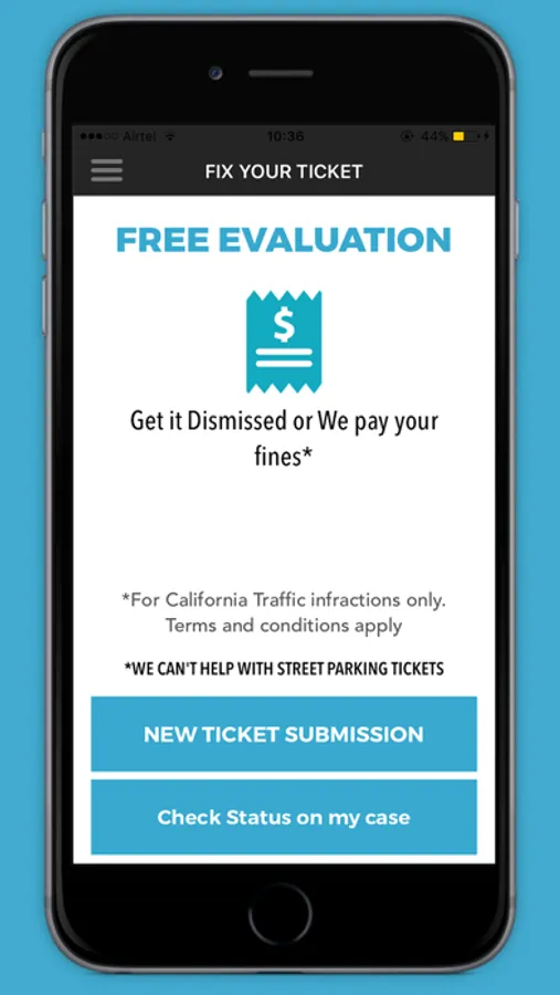 Download The Fix Your Ticket App to get started. There is NO CHARGE to use this App. The submission of your case via this App is only a request for us to evaluate your case. Only then will we determine whether your ticket qualifies for our service.