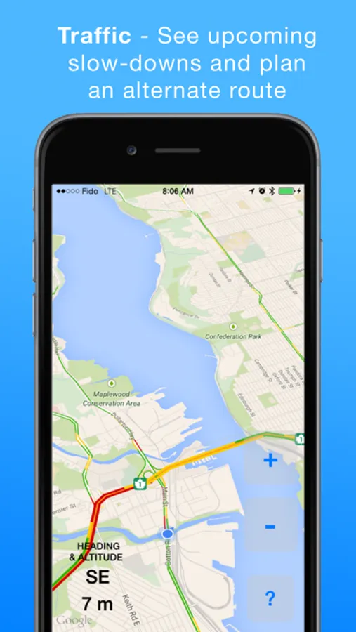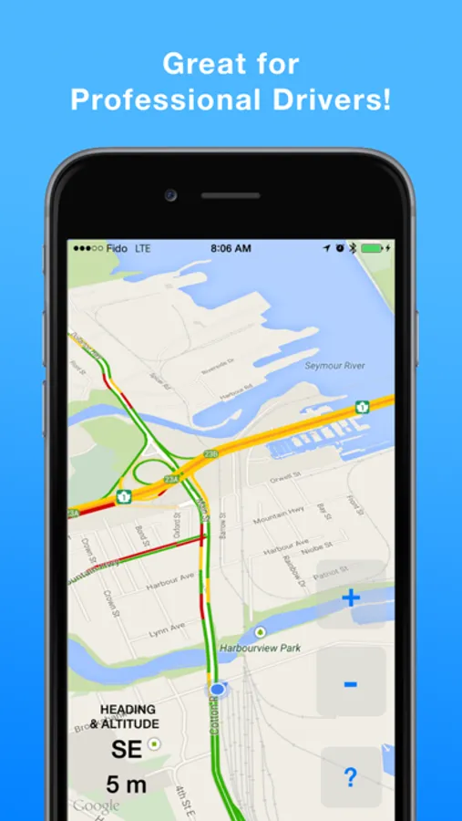 HeadsUp Drive is the simple driving & traffic app, designed to let you see the road ahead, including traffic.