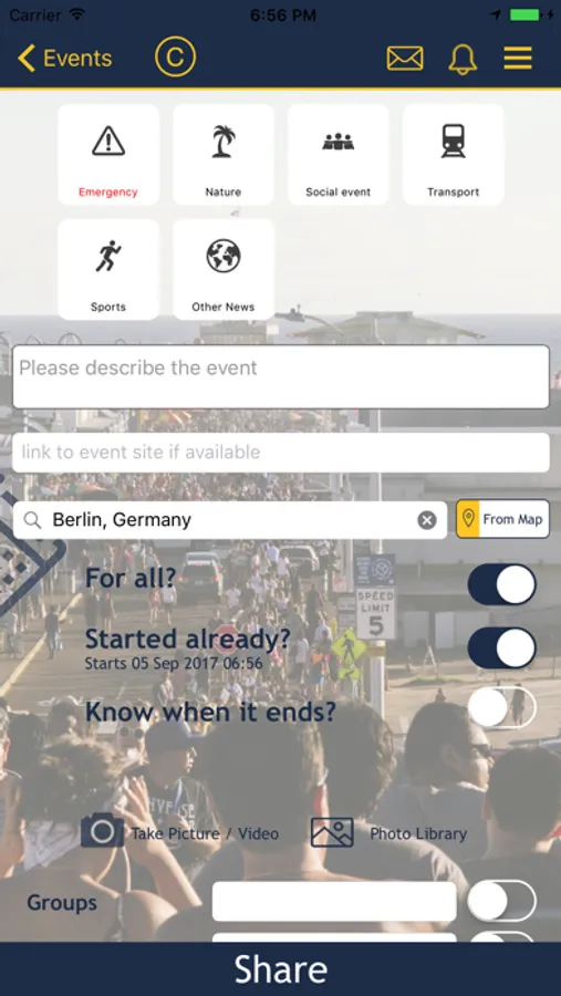 Report/share and act like a reporter. Report events and news you believe are interesting and may help other people. The whole world can see it.
