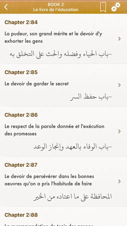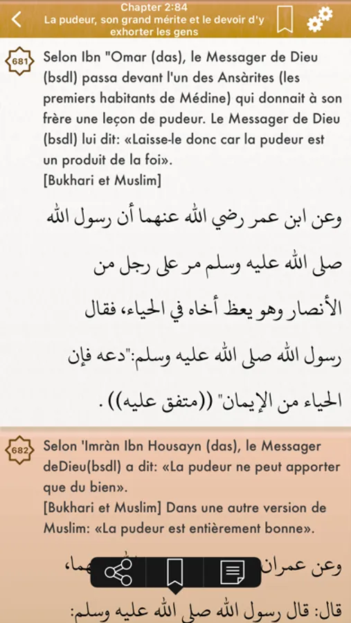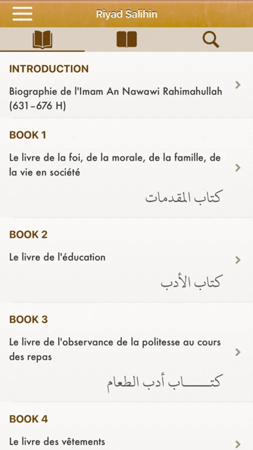 - Les 372 chapitres (extraits du Coran + 1896 Hadiths)