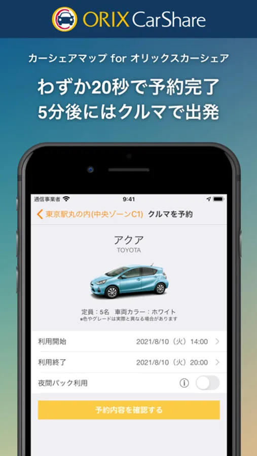 全国1,600拠点以上のオリックスカーシェアをかんたん・便利に利用できるカーシェアリング・アプリです。