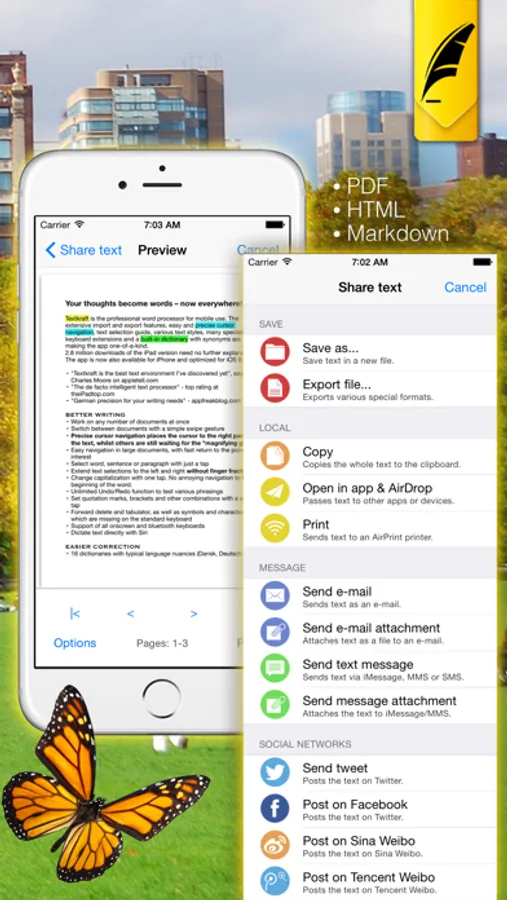• Export and share TXT, Markdown, PDF, RTF, HTML & EPUB