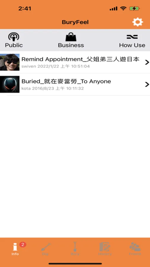 You can leave message with images, text at a specific place to any appointed/un appointed people to bury it out.