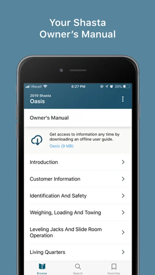 Designed to be your single source of information about your RV, the Owner’s Guide includes your Shasta RV Owner’s Manual and provides an overview of your RV features and benefits, including: