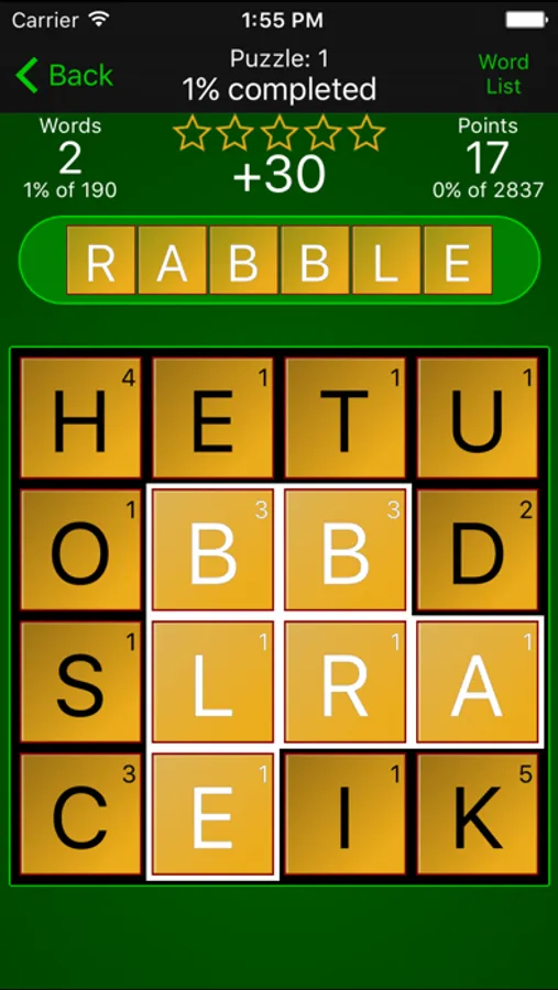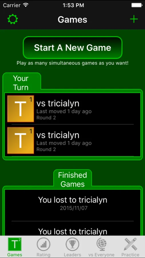 There are three types of games: Ranked Games, Friendly Games, and vs Everyone Games. Tiles By Post also has practice puzzles where you can search for words on a board with no time limit and no opponent. Challenge yourself to see if you can find half of all the words or points on a board with no time pressure.