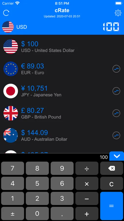 Convert exchange rates for over 160 currencies. Type conversion amounts using a custom keypad.