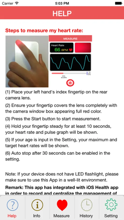 Remark: This app has integrated with iOS Health app in order to record and centralize the management of your heart rate.