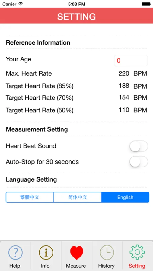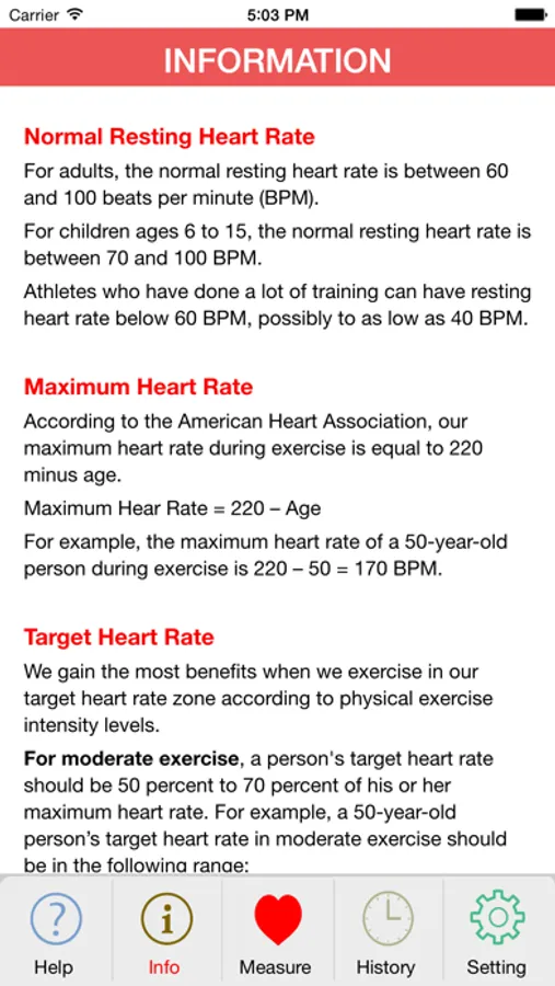 My Heart Rate app is designed with user interface similar to a real pulse oximeter, which let you monitor your heart rate anytime and anywhere, especially before and after exercise. If you enter your age in the setup page, percentage of the measured heart rate based on your maximum heart rate will be displayed for monitoring your target heart rate in moderate and intense exercise.