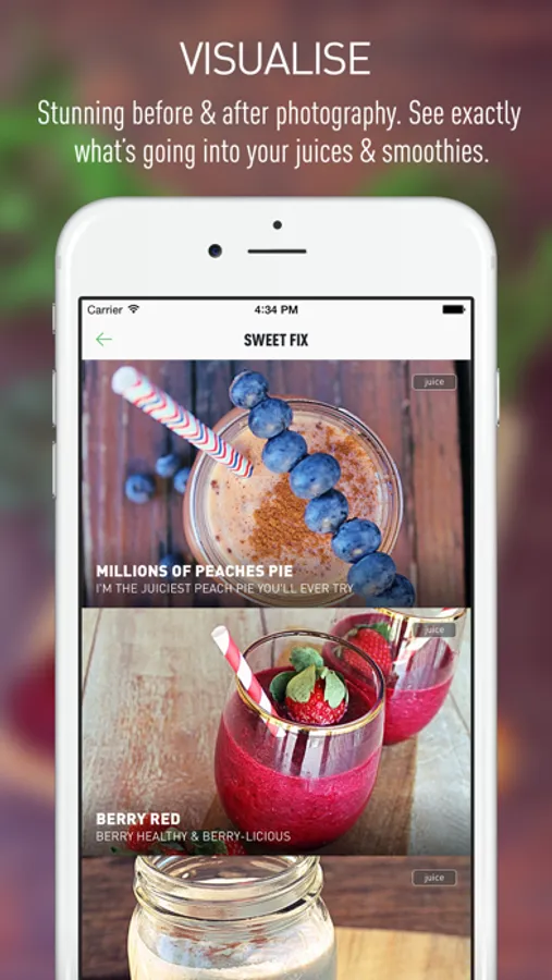 • INSPIRING BEFORE / AFTER PHOTOGRAPHY. Get inspired, stay motivated! See exactly what’s going into you juice/ smoothie and the pure goodness you’re putting into your body.
