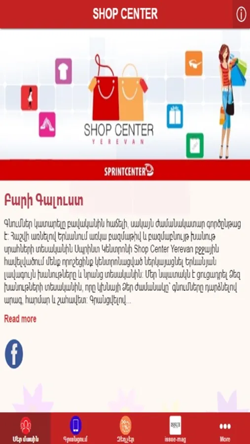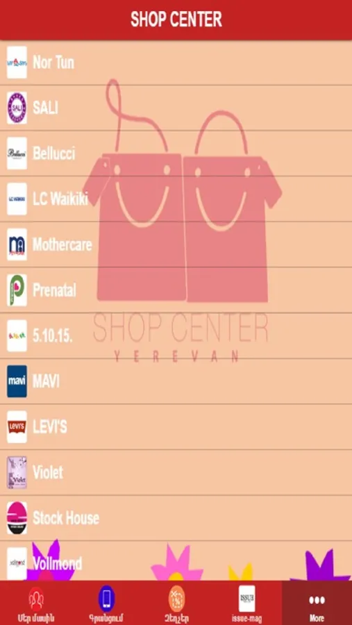 Yerevan's Shop Center is an shopping guide which has gathered more than 50 prestigious shops of Yerevan and a wide range of goods of more than 100 leading brands under one application.