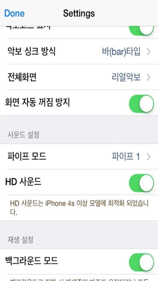 - 악보보기시 코드보기를 설정할 수 있습니다.