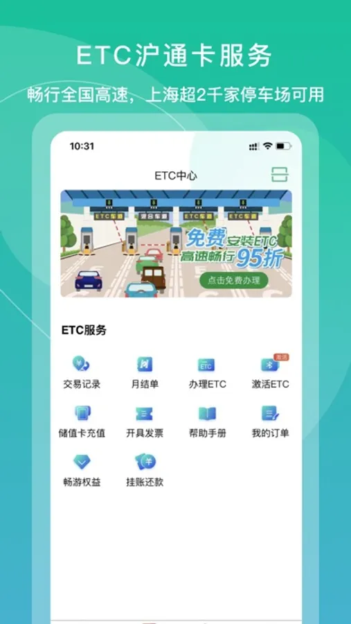 【ETC沪通卡服务】畅行全国高速及上海超2千家停车场,支持在线申请、激活、行程消费查询等售后服务,不用跑网点线上全搞定;