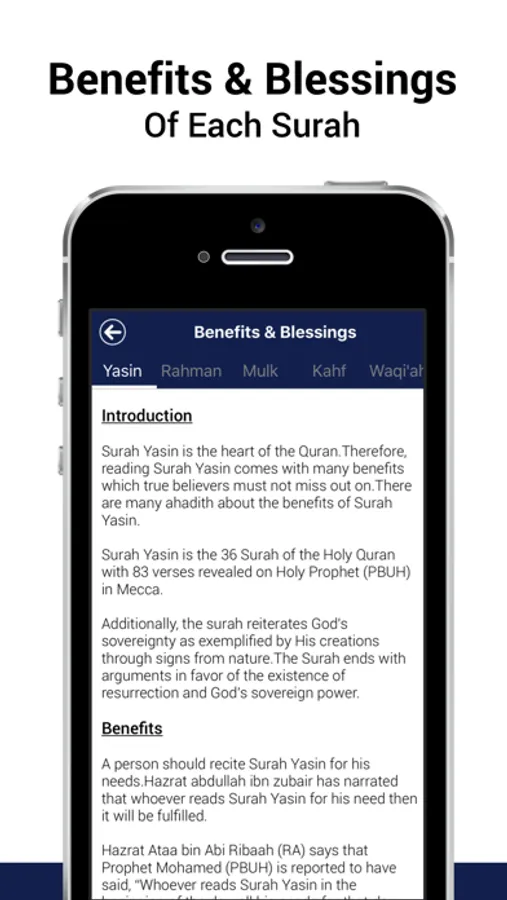 5 Surah (Five Surah) is an iOS App containing 5 most read Surahs of Holy Quran including Surah Yasin, Surah Mulk, Surah Al Waqiah, Surah Ar Rahman, Surah Al Kahf.