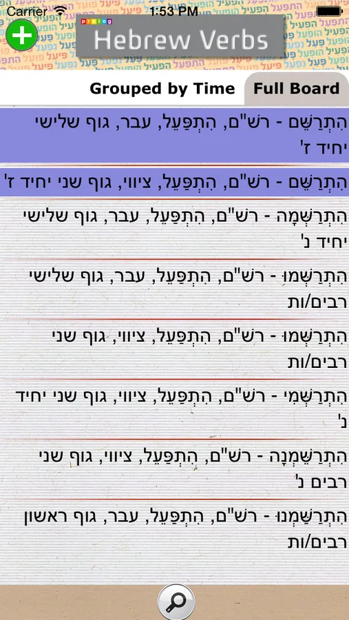 This FREE version includes only 2 verb groups: pa’al & nif’al. Upgrade for the Full Version and get all seven verb groups (binyanim): pa’al, nif’al, pi’el, pu’al, hitpa’el, hif’il, huf’al.