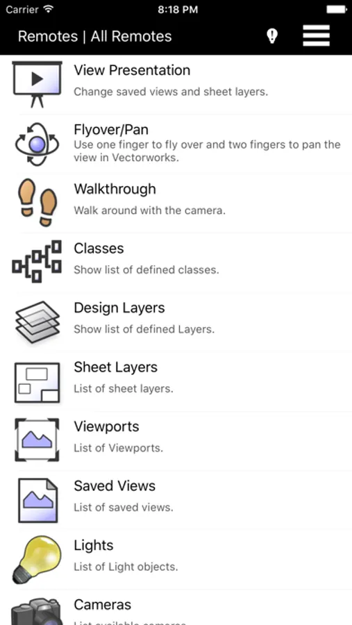 The Vectorworks Remote app connects your mobile device to your Vectorworks desktop using a remote connection plug-in. Presentation remotes for pan, walkthrough, and flyover are available for all Vectorworks products. Visualization remotes are available for Renderworks and navigation remotes are available for Vectorworks Design Suite products (Design Suite, Architect, Spotlight, Landmark). Interactively use the remotes to view, navigate, and present designs without having to be at your desktop. Vectorworks Remote requires Vectorworks 2015 software or later to be installed on either a Mac or Windows operating system. To learn more, visit http://vectorworks.net.
