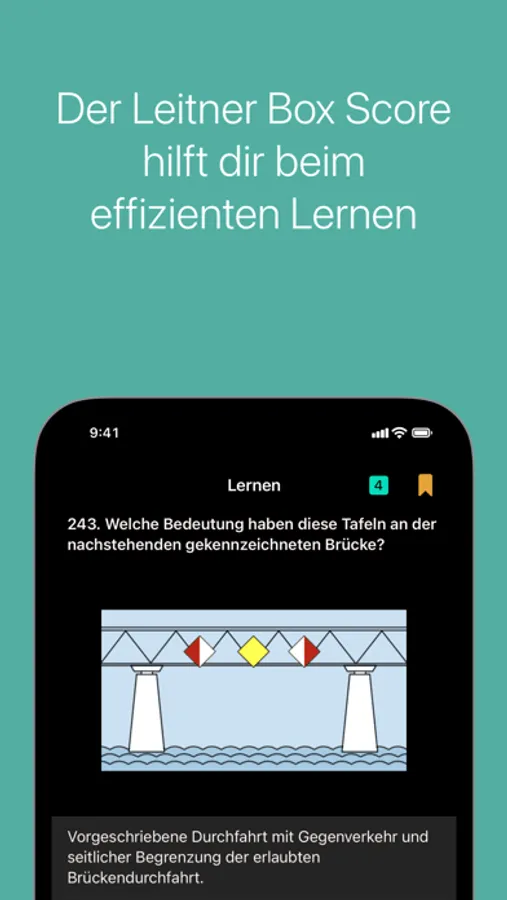 Verwende den *** Leitner Box Score *** (Lernboxen System) mit der aktuellen Version von SBF Binnen Theorie
