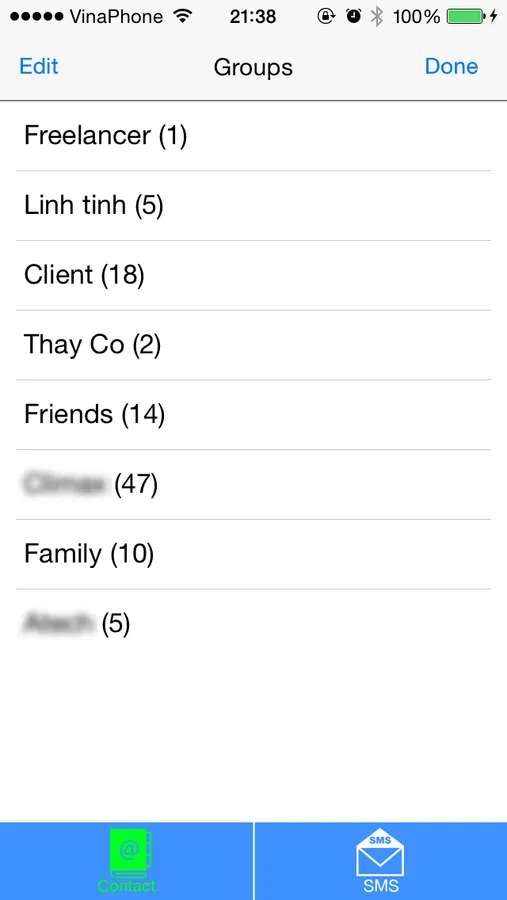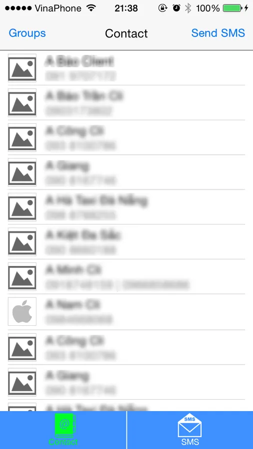 - Contact: here you can create a group, delete the group, add contacts to the group or remove contact from the group. You can view a list of contacts in the group you choose. You can choose the contact to send the sms.