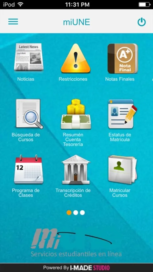 miUNE mobile apps with access for the student to non-authenticated apps like, University Activities Calendar, News, Videos, Photo Galery, among other. As electronic transactions such as enrollment, grades, academic history, account and financial aid information, among others; which do required authentication using its student assign User Account and Password.