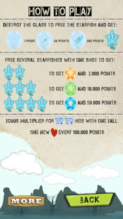 Free several starfishes with one shot to get bonus stars - destroy the stars to get your bonus points.