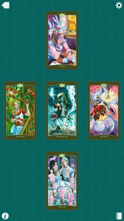 The characters in So Below reflect our modern multiethnic societies. The royalty cards show the same person at different stages of life. The Chalice and Pentacle royalty feature men, while Wands and Swords royalty show women, an example of the fluid gender roles found throughout the deck.