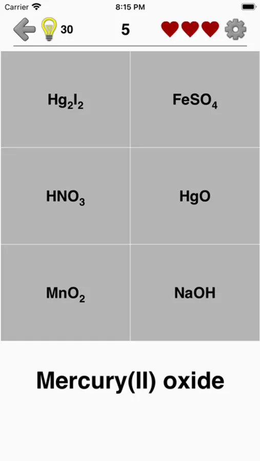 * Flashcards where you can browse all compounds and their formulas without guessing.