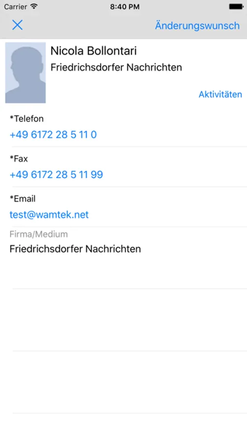 Diese App ermöglicht Ihnen die Kontakte aus den WAMTEK Serveranwendungen PRMS, CMI, Wamtek v5 auf Ihr iPhone zu synchronisieren.